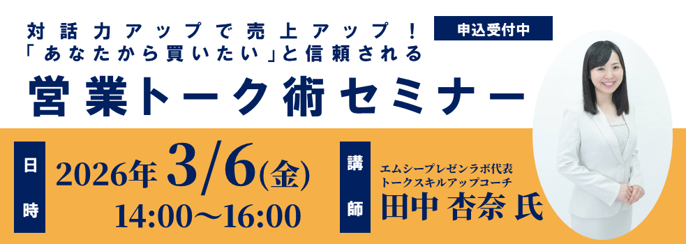 「あなたから買いたい」と信頼される!営業トーク術セミナー